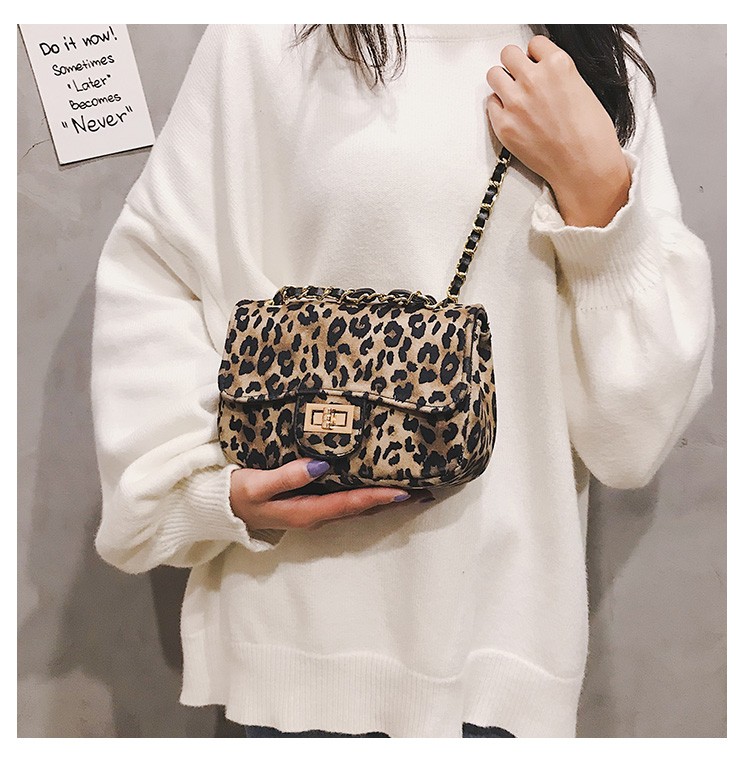 豹紋麂皮絨挎包