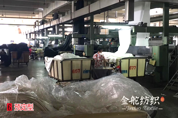 6.預(yù)定型,讓布平整為后道麂皮絨磨毛做準(zhǔn)備,通常這里會(huì)放入一定量的起毛劑,比較重要,布面平整可以減少磨毛條的產(chǎn)生。