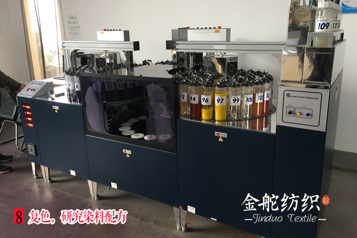 8,拿磨毛后的半成品來(lái)打顏色樣,研究配方。用磨毛好的半成品來(lái)復(fù)色后再染色,可以提高顏色的準(zhǔn)確度!
