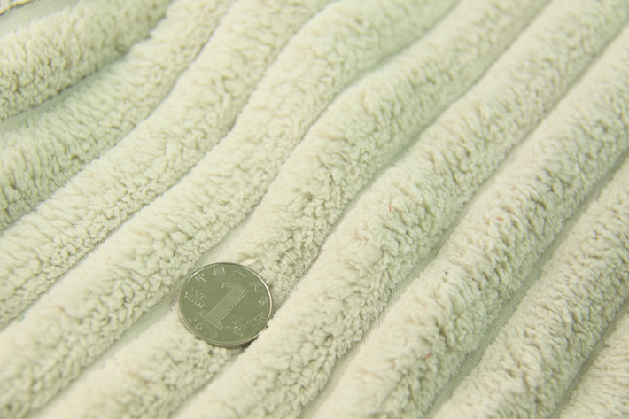 最細的直條28條燈芯絨,不注意數(shù)都會經(jīng)常數(shù)錯條數(shù)。35條就變成仿平絨一樣的。粗條和細條在織造上主要是緯紗浮長線的長短設(shè)計不同,燈芯絨并不是可以做任意條數(shù)的,如做40條,50條,因為燈芯絨屬于割絨產(chǎn)品,受到生產(chǎn)設(shè)備技術(shù)的限制,28條割絨都比較有難度的了,割絨刀片都需要用進口的,很容易出現(xiàn)割絨條等病疵!了解了燈芯絨粗細條,我們就要說下重點,燈芯絨是粗條好還是細條好?