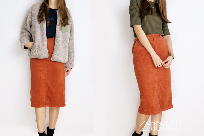 細條燈芯絨,14條全棉彈力燈芯絨做成的短裙。