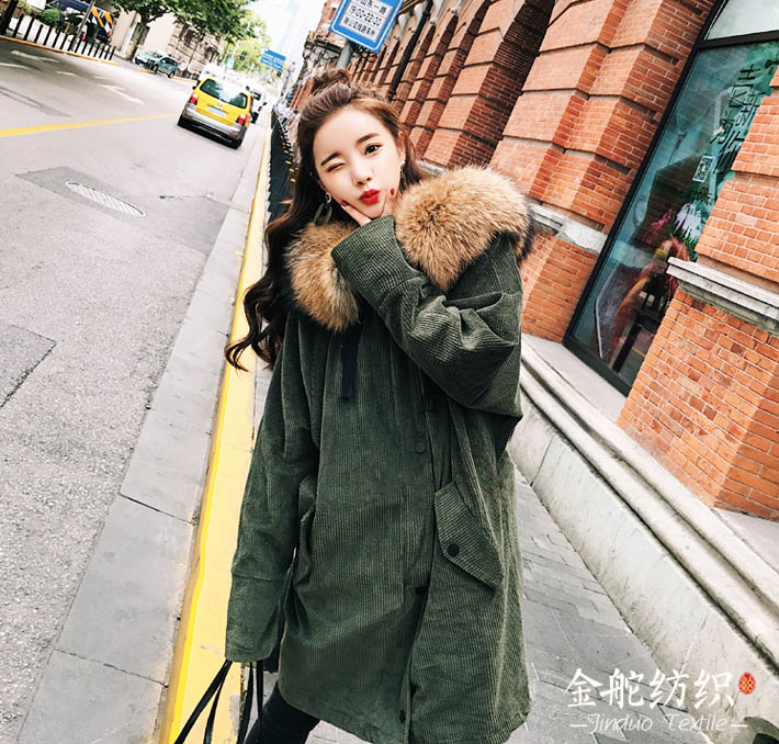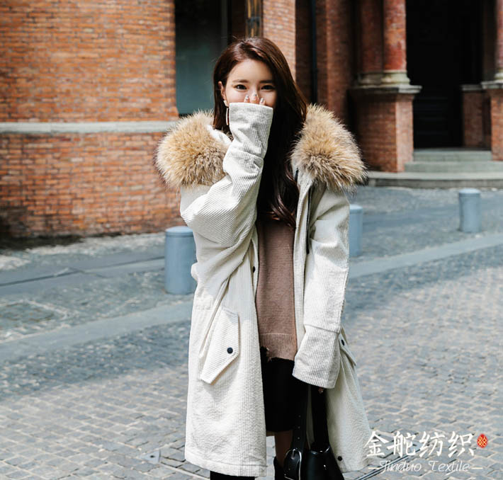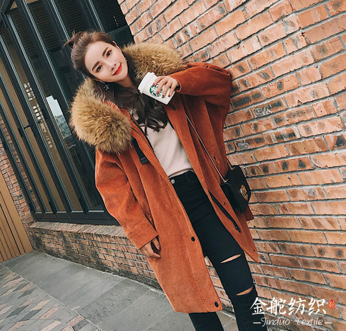燈芯絨帶毛領(lǐng)大衣