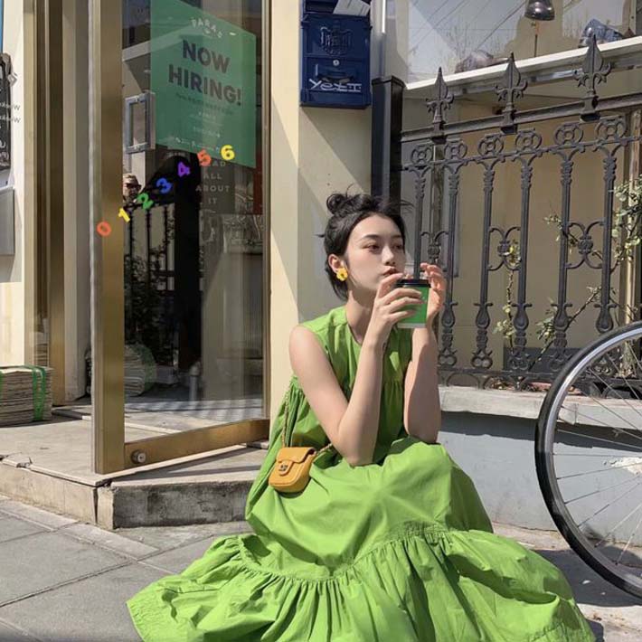 牛油果綠長(zhǎng)裙。