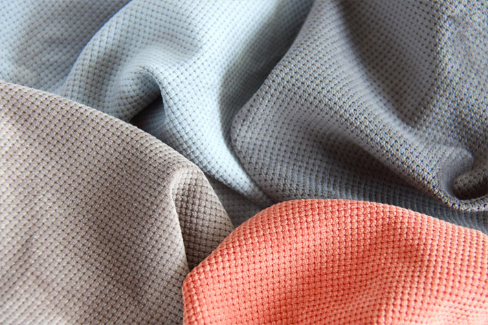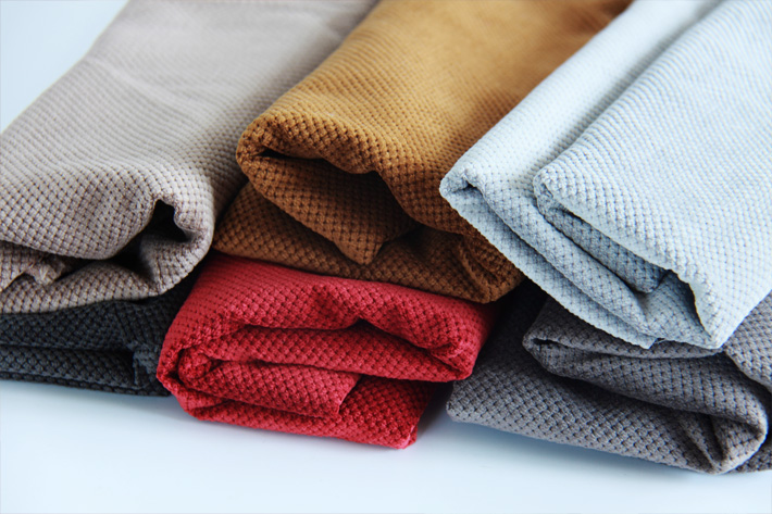 小菠蘿格燈芯絨,色澤艷麗,布面呈現(xiàn)小顆粒均勻分布,類似水果菠蘿表面的紋路,而得名。