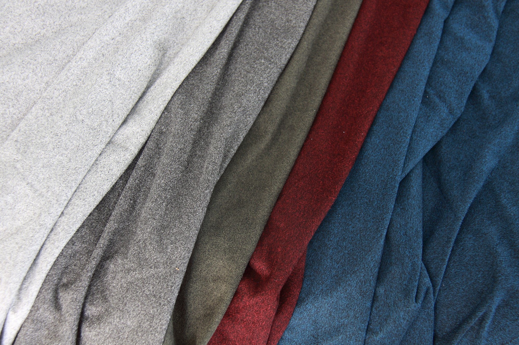 經(jīng)過開纖,拉毛,磨毛,染色,定型,梳毛一系列復(fù)雜工藝而成。因布面形成雙色效果,手感舒適,棉柔的感覺及厚實(shí)感而獨(dú)具特色。廣泛應(yīng)用于男裝笳克及手機(jī)套,數(shù)碼產(chǎn)品包裝等!一分價(jià)錢一分貨,該款面料有很多染廠都是直接采用單磨毛工藝,成品后,表面的絨毛稀疏,只見雙色,不見絨毛,更沒有絨毛的棉柔效果!