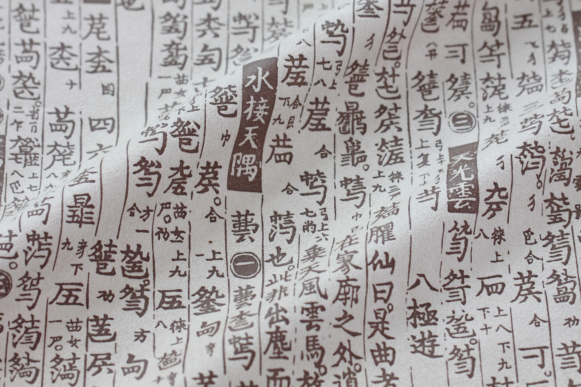 該麂皮絨面料采用200D,300D經(jīng)向麂皮絨進(jìn)行燙金壓膠工藝加工,以中國古文字為花型,麂皮絨的絨面效果與漢字的結(jié)合,形成中國風(fēng)的 韻味。