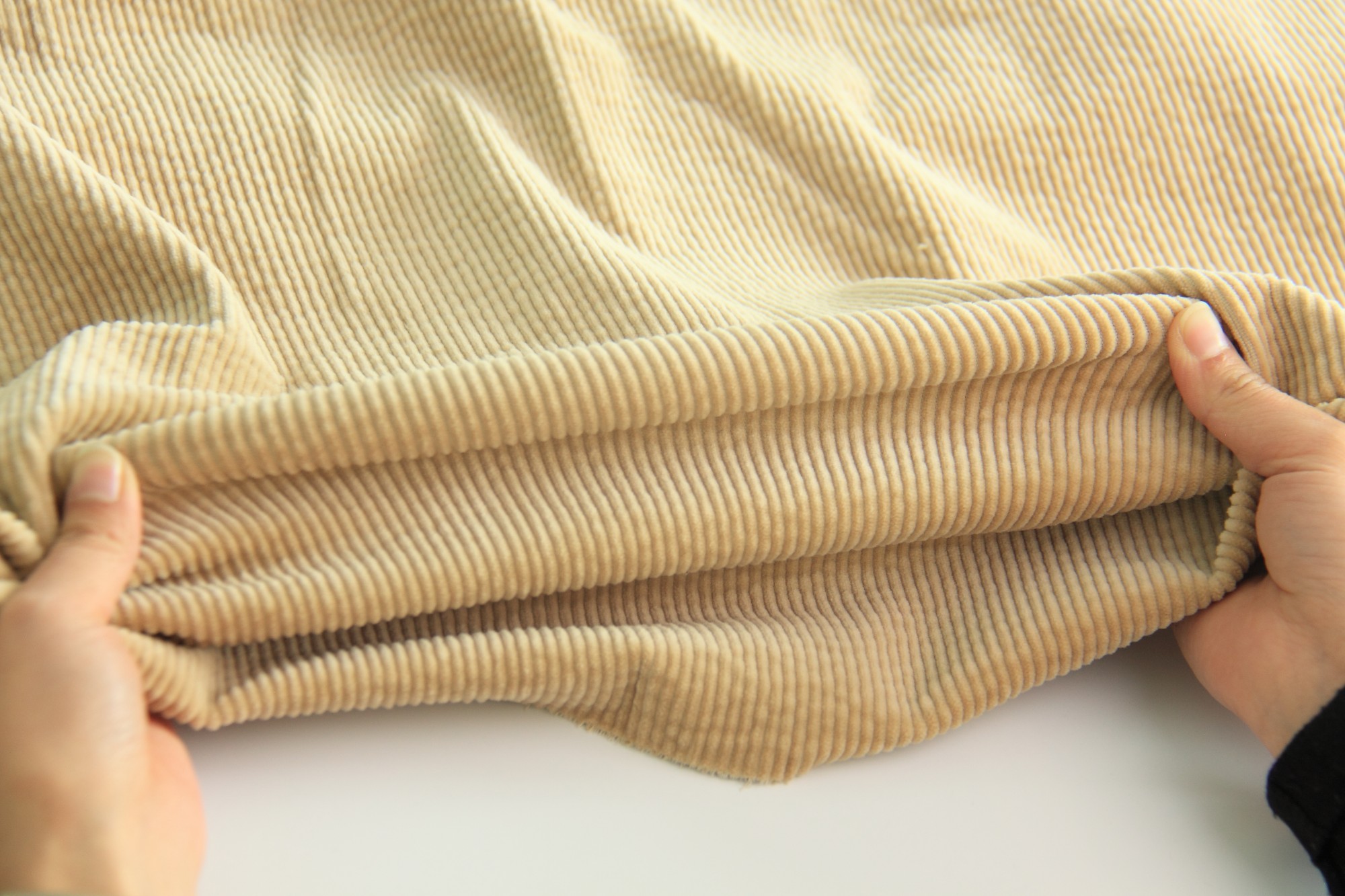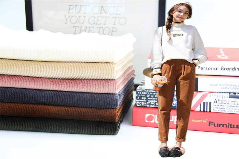 8條彈力泡泡燈芯絨,棉加氨綸,富有彈性,耐磨,穿著親膚,寬松舒適,用它做成的燈芯絨“老爹褲”引領(lǐng)2018年女裝復(fù)古潮流風(fēng)!