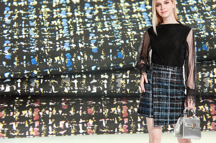黑色空氣層麂皮絨底布與七色彩膜結(jié)合,花型更加鮮亮,立體。