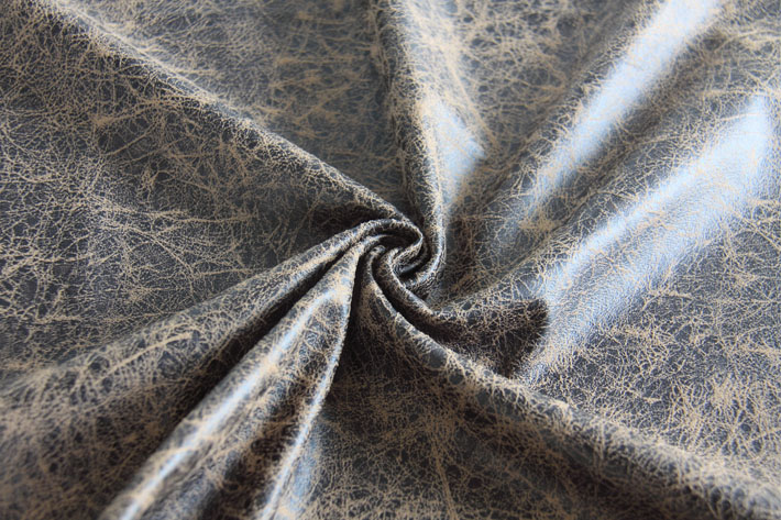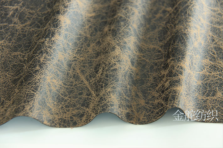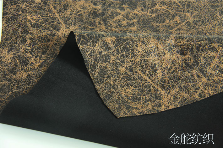該面料選用梭織緯向麂皮絨,進(jìn)行燙金工藝加工,具有較好的皮膜效果,硬挺耐磨,膠水復(fù)合6米黑色針織布,透光率低,可做仿皮抱枕,沙發(fā)套,遮光窗簾面料。可按客戶來樣開發(fā)定制花型。