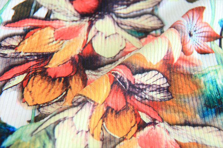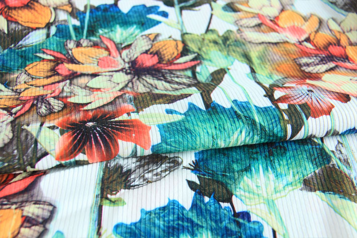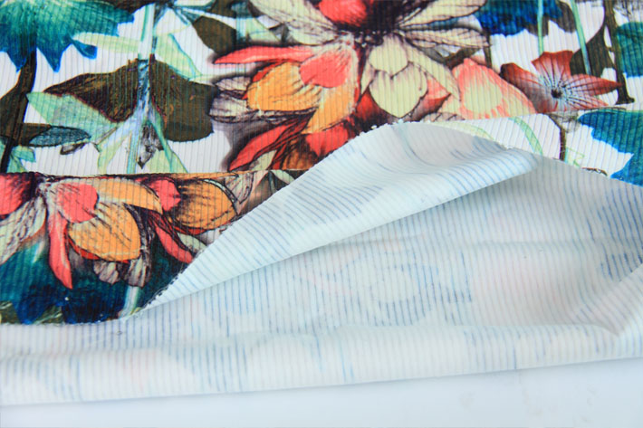 8條燈芯絨,條絨粗細適中,表面的坑條效果,成為一種時尚元素,在服裝領(lǐng)域甚是流行,在家紡卻是少見,本面料選用8條燈芯絨本白色,進行轉(zhuǎn)移印花加工開發(fā),選用植物花型,花型大小協(xié)調(diào),色彩鮮艷,可做抱枕,窗簾,布包,家紡等領(lǐng)域。