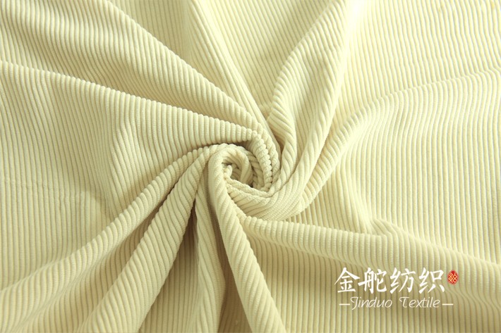 8條燈芯絨因條絨粗細適中,布面平整,近兩年來成為錦滌燈芯絨面料銷量中最好的品種,用途十分廣泛。上衣外套,燈芯絨背包,燈芯絨闊腿褲,書本裝禎布,坐墊,寵物用品,鞋材等等。8條燈芯絨面料主要用在服裝領域,常規(guī)的8條無彈燈芯絨不能滿足人們穿著舒適性的要求,故推出8條彈力燈芯絨面料。