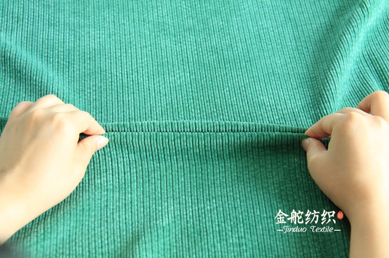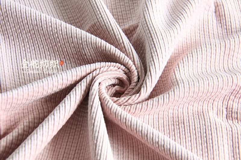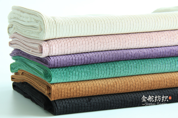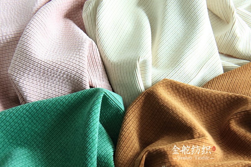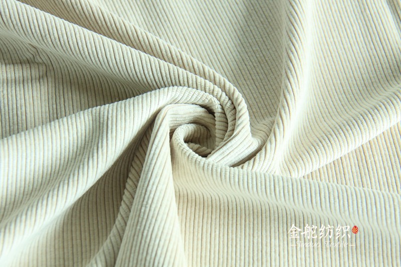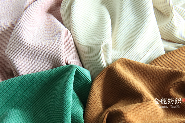5條雙泡泡燈芯絨條絨采用優(yōu)質(zhì)滌錦復(fù)合絲織造而成,經(jīng)過開絨,前處理預(yù)縮,染色,定型,梳毛,條絨清晰,絨感飽滿,絨面形成顆粒狀突出,類似泡泡,手感柔軟,帶彈力,風(fēng)格獨(dú)特,色澤艷麗,廣泛應(yīng)用于童裝外套褲裝。